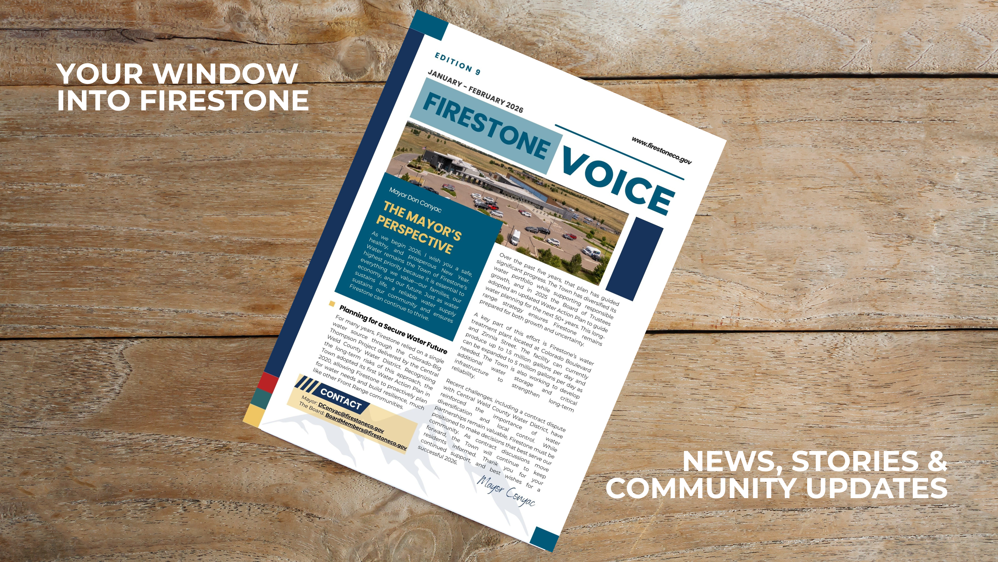 The Firestone Voice is our community newsletter, mailed directly to every household to help you stay connected to what’s happening around town. Inside, you’ll find local news, upcoming events, and helpful updates designed to keep you informed and engaged.